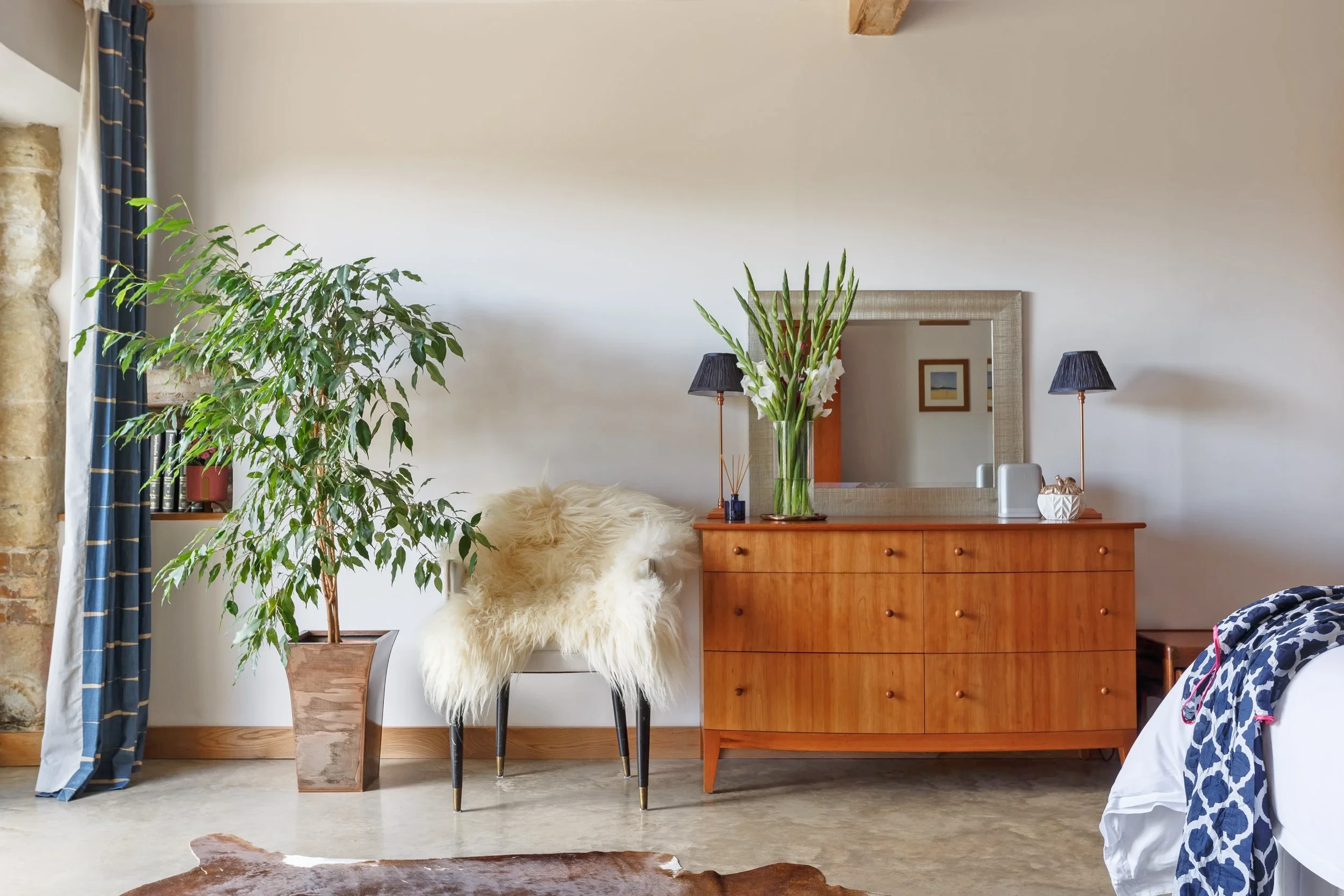 A romantic hideaway where luxury meets simplicity. The king-size bed, draped in crisp white linens and soft throws, is designed for ultimate comfort. Clean Scandinavian-inspired lines meet rustic Yorkshire textures, creating an atmosphere that is both stylish and serene.